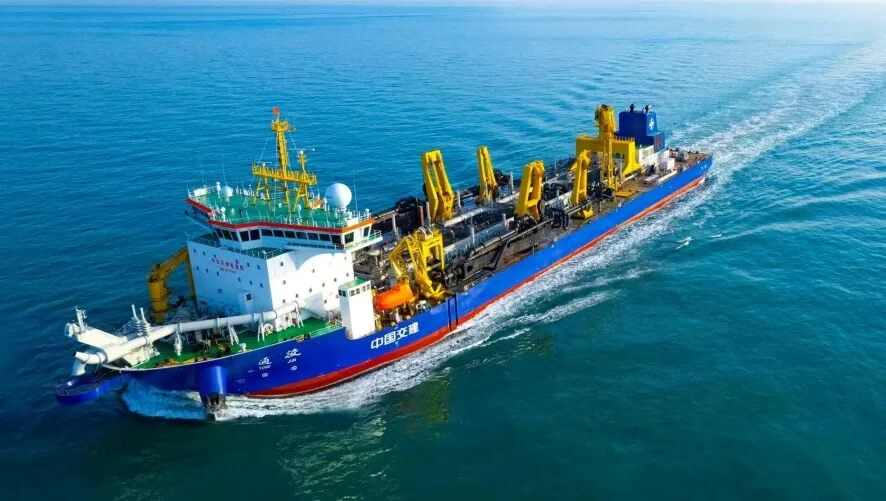 2025年12月8日,“通浚”轮缓缓驶入“中国洋浦港”,正式入籍海南。这艘由中交天航局主导设计建造的超大型耙吸挖泥船,最大舱容达38168立方米,位居亚洲第一、世界第二。它一次作业即可将一个标准足球场填高5米,并实现12公里超远距离排泥。更关键的是,“通浚”轮融合海砂淡化、疏浚物二次加工等技术,打通了“深海采砂—环保处理—工程应用”的绿色产业链,真正实现“疏浚不扰海、取砂不伤岸”。