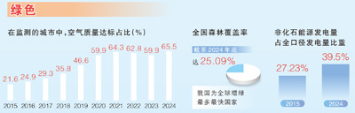 从2015年到2024年,全国地级及以上城市PM2.5平均浓度下降超过1/3;构建起全球最大、发展最快的可再生能源体系;新注册登记的汽车中,超过四成为新能源汽车……这10年,青山常在、绿水长流、空气常新的美丽中国画卷徐徐铺展。