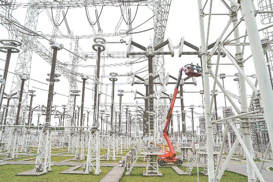 10月20日,安徽送变电工程有限公司检修人员在古泉换流站进行检修作业。10月17日至10月23日,准东—皖南±1100千伏特高压直流输电工程的受端站—安徽宣城古泉换流站迎来年度停电检修。准东—皖南±1100千伏特高压直流输电工程起于新疆昌吉换流站,止于安徽古泉换流站,是目前世界上电压等级最高、输送距离最远、输送容量最大的输电工程。新华社记者 杜宇 摄