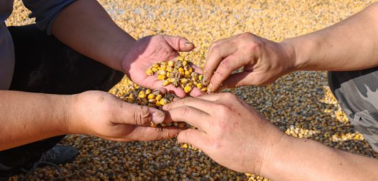 履带式收割机收完玉米后直接脱粒,这些玉米粒在阴雨天里不能晾晒,如果不及时烘干,很快就会霉变。刘一飞和王振一方面通过网络联系河南、安徽、河北等地,另一方面赶赴潍坊、德州、济宁寻找烘干设备。