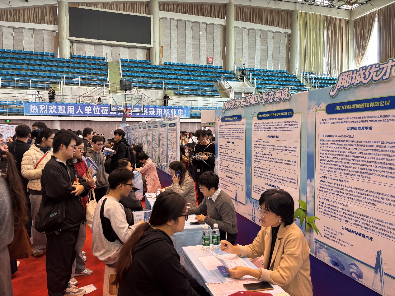 人民网海口10月27日电 (记者李学山)人才是城市发展的重要根基,高校毕业生等青年群体就业是就业工作的重中之重。9月25日至10月25日期间,由中共海口市委人才发展局、海口市人力资源和社会保障局联合主办,海口市人力资源开发局、海口市人才劳动力交流服务中心共同承办的2025年促进高校毕业生就业服务活动—省外高校选聘会走进西南民族大学、湖南工程学院等6所高校,吹响人才招引的号角,开启新一轮高校学子与海南自贸港核心引领区的“双向奔赴”。