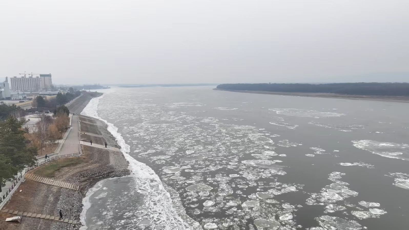 呼玛县作为中俄界江黑龙江沿线最长的县域,每年10月末,这里都会上演震撼的“跑冰排”奇观,从最初江波载着细碎冰絮轻轻漾动,到渐次汇聚成棱角分明的冰块、连成串的冰排,再到巨块冰体如万马奔腾般顺江而下,场面十分壮观。
