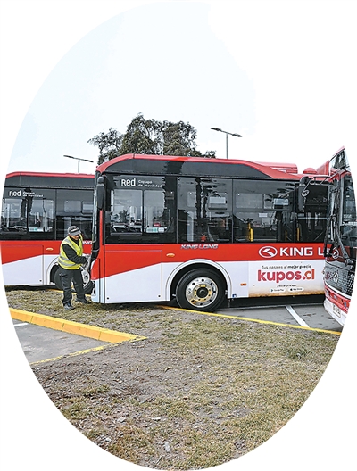 在智利科皮亚波拍摄的中国生产的新能源公交车。  |