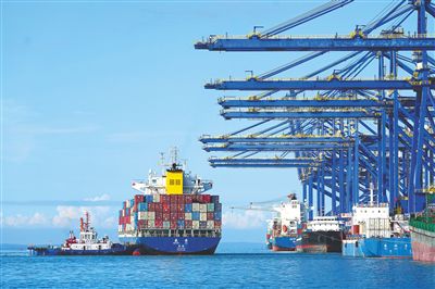 日前,在洋浦国际集装箱码头内,轮船有序进出港。海南日报全媒体记者 陈元才 摄