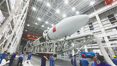 11月4日上午,发射场技术区内,长征十二号遥三运载火箭已完成发射前组装,静静地躺在二号发射工位的三平火箭厂房里,等待即将开启的太空征途。