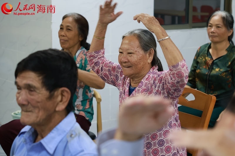 在马脚村日间照料中心,工作人员正带领老人做游戏。 实习生 王忠华摄
