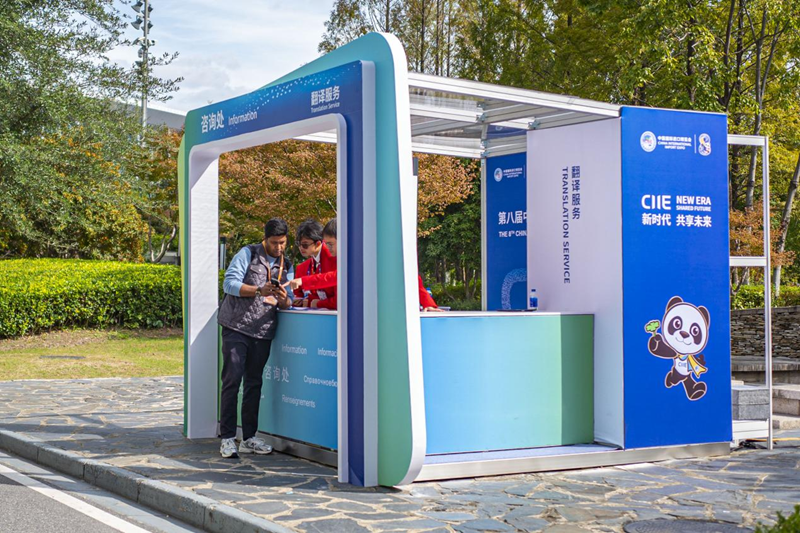 11月3日,志愿者为国外展商指引路线。人民网记者 王初摄
