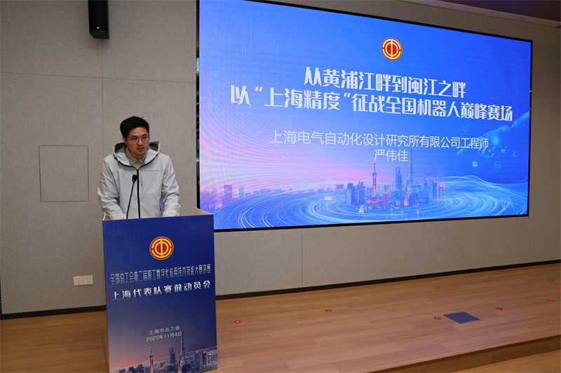 旌旗猎猎,战鼓催征。全国总工会第二届职工数字化应用技术技能大赛决赛即将在福建福州举行,11月4日,在赛前动员会上,上海代表队已整装待发。这支由工业机器人、数据安全、无人机三大工种9名选手及6名生成式人工智能观摩赛选手组成的精锐之师,将代表上海产业工人出征。