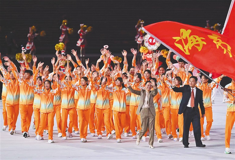 11月9日晚,第十五届全国运动会在广州开幕。入场仪式上,海南省体育代表团运动健儿精彩亮相,展现了自贸港青年的活力和风采。