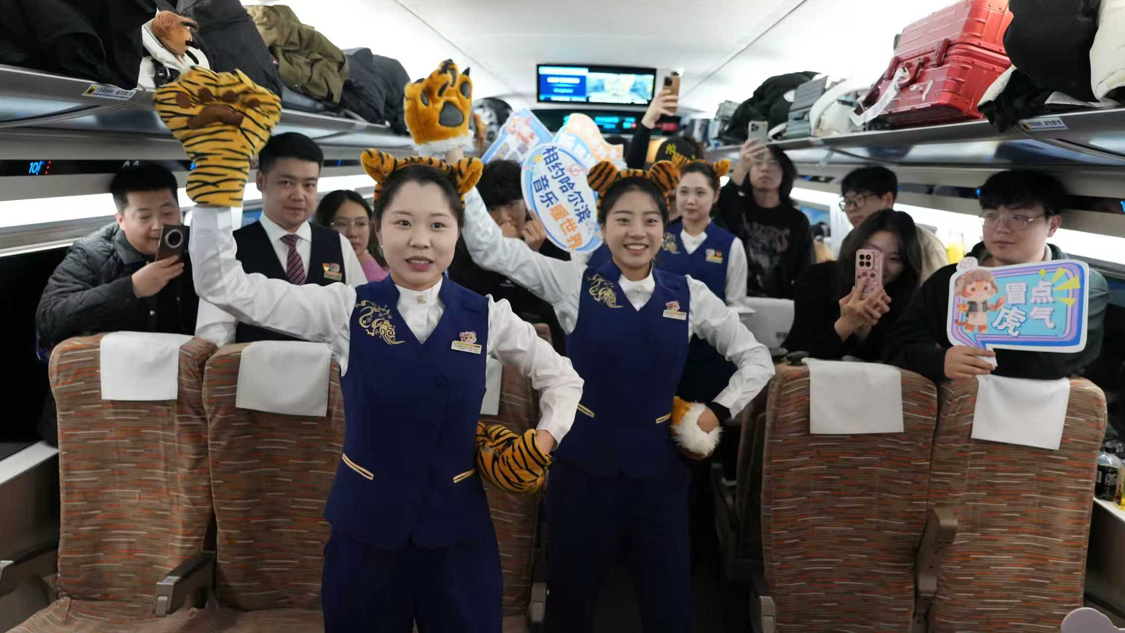 G917次列车连接北京朝阳至哈尔滨西,全程1235公里,运行时间仅4小时35分,成为南方游客“找北游”的主要交通工具。哈尔滨音乐学院青年民族乐团利用乘车赴京参加演出契机,在返程途中开展冰雪主题民俗音乐会,用二胡、唢呐、笛子等民族乐器,演奏《春江花月夜》等多首经典曲目,传播音乐文化,唱响中国旋律。