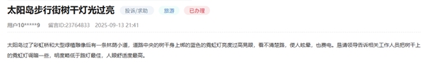太阳岛风景区是哈尔滨一张闪亮的城市名片,以其独特的魅力成为市民游客向往的旅游胜地。有网民对景区灯光问题提出了建议:太阳岛过了彩虹桥和大型绿植雕像后有一条林荫小道,道路中央的树干上绑的蓝色霓虹灯亮度过高晃眼,让人看不清楚路,也费电,希望把树干上的霓虹灯调暗一些。
