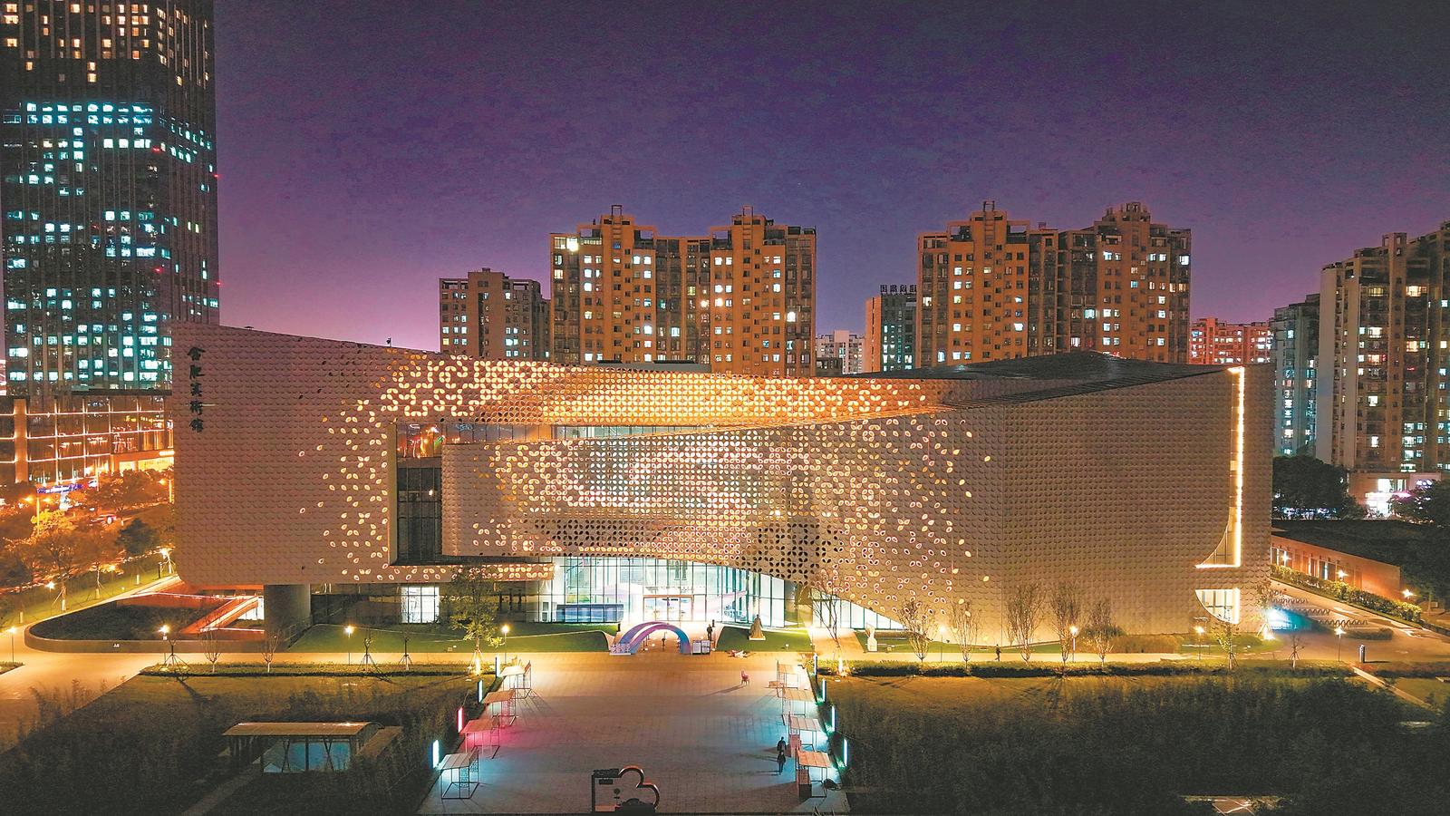 11月28日晚,合肥美术馆外立面灯光璀璨,光影在桂花造型的幕墙上流转,与天鹅湖畔的夜色交相辉映。这场灯光秀是为11月29日美术馆正式开馆预热。该馆位于怀宁路与万佛湖路交叉口的安徽文博园内,总建筑面积达3.6万平方米,是合肥市文化艺术新地标。记者 王兰兰 摄