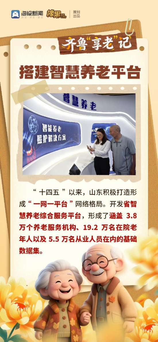 家门口的老年食堂饭菜飘香,智慧养老院里的智能设备实时监测老人健康,适老化改造让居家养老既安全又舒心……从“安身”到“安心”,从“养老”到“享老”,山东养老服务从“纸面”走向了老年人的“心坎”,构筑起“老有所安”的幸福图景。(内容综合自山东省民政厅、大众新闻等)