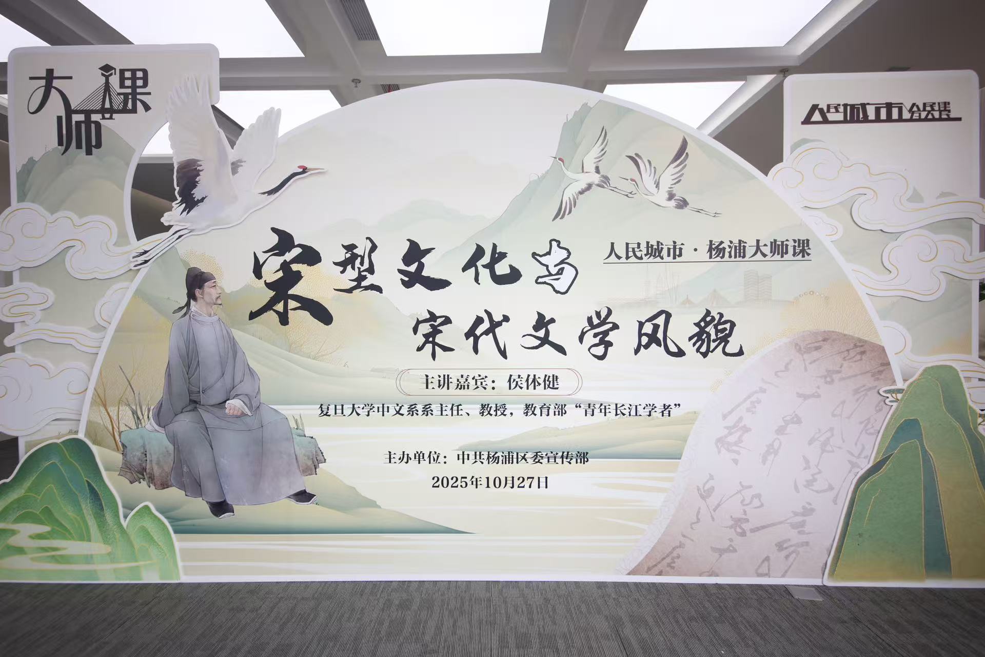 人民网上海10月27日电 10月27日,由中共杨浦区委宣传部主办的“人民城市·杨浦大师课”第七讲在上海人民城市实践展示馆举行。复旦大学中文系系主任、教育部“青年长江学者”侯体健教授以“宋型文化与宋代文学风貌”为题,为现场听众带来一场深入浅出、意蕴绵长的传统文化讲座。