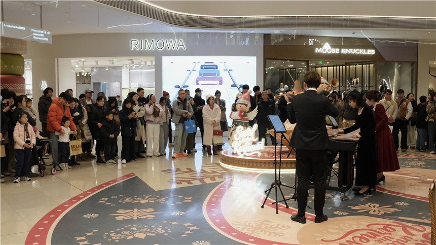 元旦当天,静安嘉里中心多场新年限定音乐演出轮番登场,一场场听觉盛宴吸引了众多市民游客驻足欣赏。人民网记者 沐一帆摄