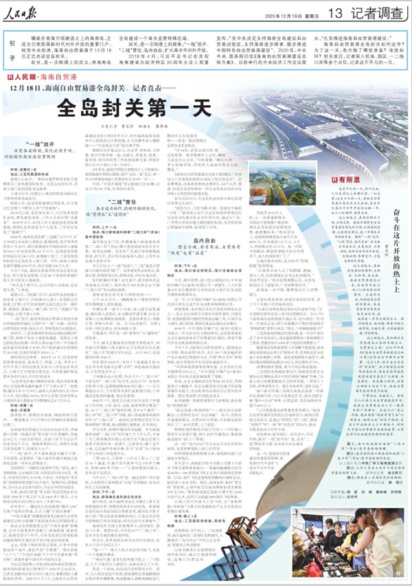 这是平凡的一天,琼州大地,人们在岗位上拼搏忙碌,一如往昔;这是不凡的一天,海南自由贸易港全岛封关正式启动,迈出扩大高水平对外开放的关键一步,让人心怀期待、憧憬未来。