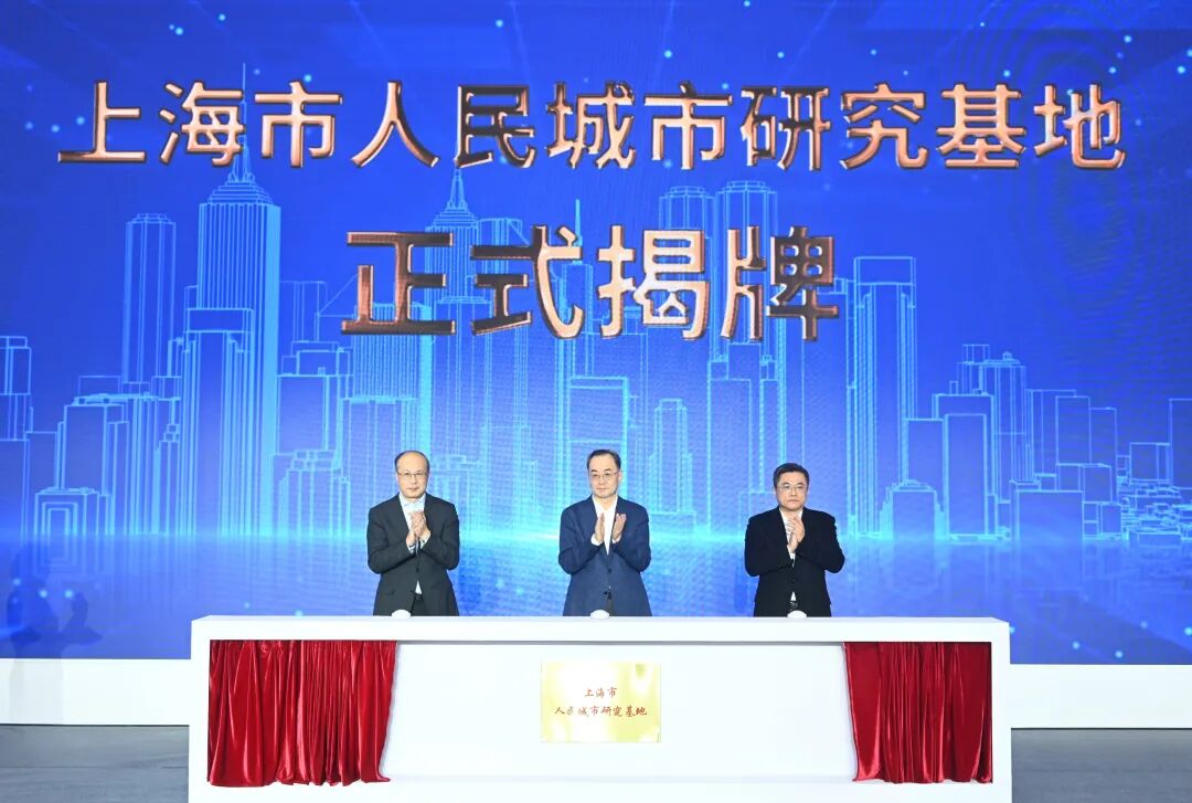 权衡、薛侃、陈志敏共同为“上海市人民城市研究基地”揭牌。