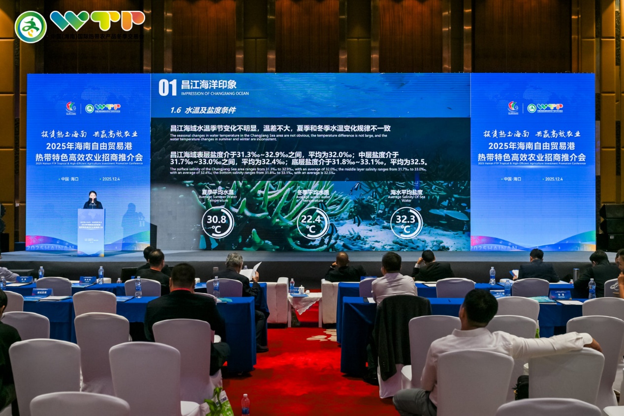 人民网海口12月5日电 (记者李学山、符武平)12月4日下午,2025年海南自由贸易港热带高效农业招商推介会在海口举办。昌江凭借优质的营商环境与明确的产业规划,成功签约投资额1.6亿元的现代渔业产业集群项目,进一步助力昌江打造“海陆联动、低碳循环、集群发展”的海陆利用现代渔业发展新业态。