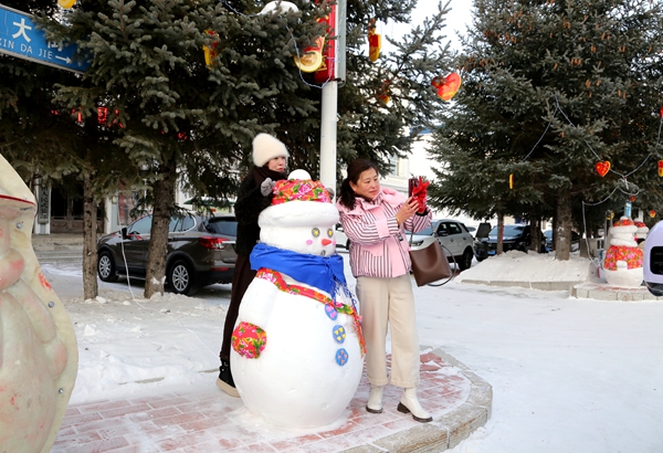 工匠们以冰雪为墨、以刀为笔,精心雕琢的创意冰雪雕塑分别呈现在呼中区的大街小巷。各种形态的雪人、精雕细琢的冰雕更是以萌趣灵动、贴近大众审美的造型,成为市民游客争相拍照打卡的热门选择。
