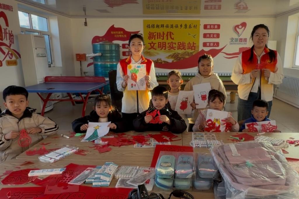 窗花“剪”起来,童趣“乐”起来。福禄朝鲜族满族乡新时代文明实践所深入四方村、康乐村,开展“我在新时代文明实践中心过寒假”关爱留守儿童主题活动,让传统年俗文化在少年儿童心中落地生根、开花结果。活动中,志愿者们为孩子们送上书包、文具盒、笔记本等精心准备的学习用品,与孩子们促膝长谈,耐心询问他们的生活状况、学习进度和身心健康情况。针对寒假期间各类安全风险隐患,志愿者们用通俗易懂的语言,围绕用火用电安全、交通安全、防拐骗、网络安全等重点内容开展安全宣讲,通过趣味讲解、互动问答等方式,帮助孩子们增强安全防范意识,提升自我保护能力。随后,志愿者们化身“年俗传承人”,向孩子们讲述窗花的历史渊源与民俗寓意,手把手指导大家剪窗花、迎新春。一张张红纸在孩子们的手中翻转折叠、裁剪勾勒,渐渐变成憨态可掬的生肖窗花、寓意团圆的福字纹样,现场年味浓郁、童趣盎然,孩子们的脸上都洋溢着开心的笑容。