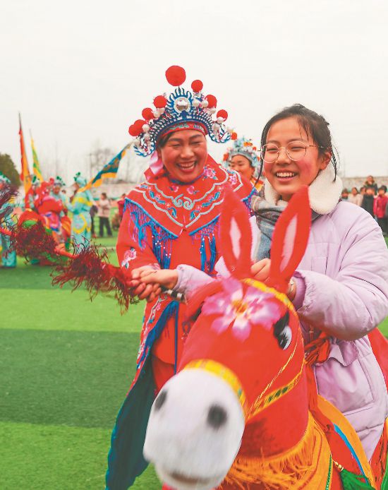 在芜湖市湾沚区新丰老街,锣鼓声中,“芜湖马灯”开演,十多名青壮年驾驭竹马,穿梭腾跃,摆出“虾子戏水阵”等经典阵型,引得观众喝彩连连;在淮南市毛集实验区,“马戏灯”表演别具一格,十多名女将骑“马”亮相,英姿飒爽;在宣城市郎溪县新发镇,表演“下阳小马灯”的孩童们装扮成《三国演义》中的人物,夜幕下,烟花与孩子们灵动的身影交织,画面动人。