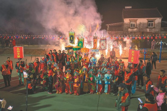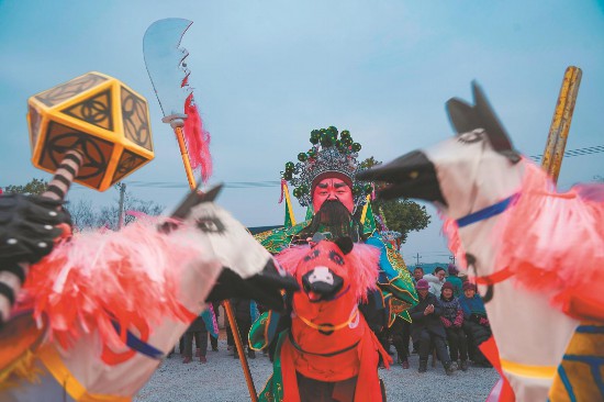 2月14日,芜湖市湾沚区上演非遗老村街张氏马灯。