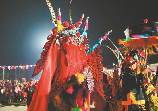 2月3日,宣城市郎溪县新发镇双桥村上演精彩非遗下阳小马灯。