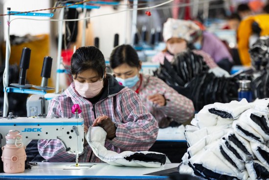 “哒哒哒!”三分钟后,请假收被子的葛秀娜,已经坐在丞溪服装加工共富工坊的缝纫机前,针线快速抬起落下,她很快就缝好了一个羽绒服口袋。家门口的这份工作,给了葛秀娜照顾家庭的时间,也给了她“端住饭碗”的底气。