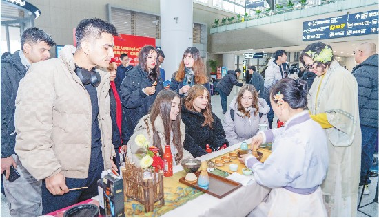 日前,外国游客和国际友人参加青岛市文化和旅游局与青岛国际机场集团共同主办的春节特色活动。