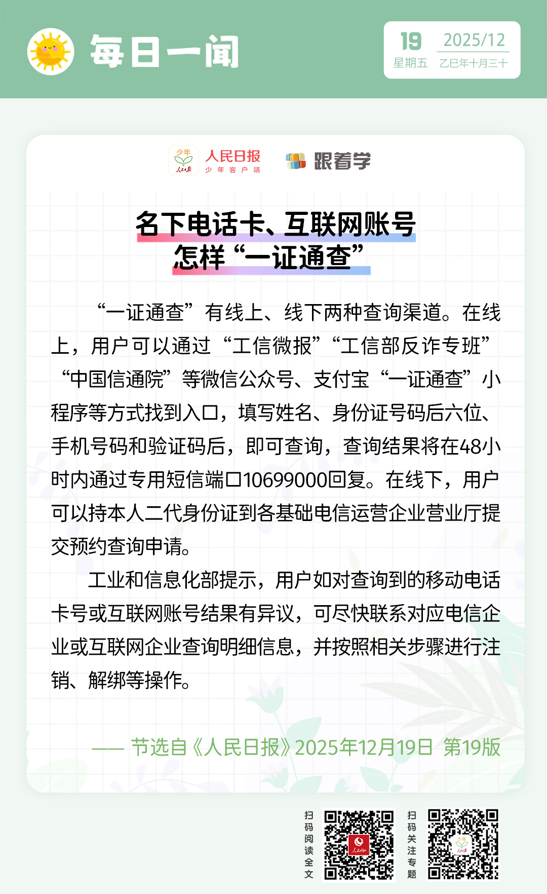 每日一闻丨名下电话卡、互联网账号怎样“一证