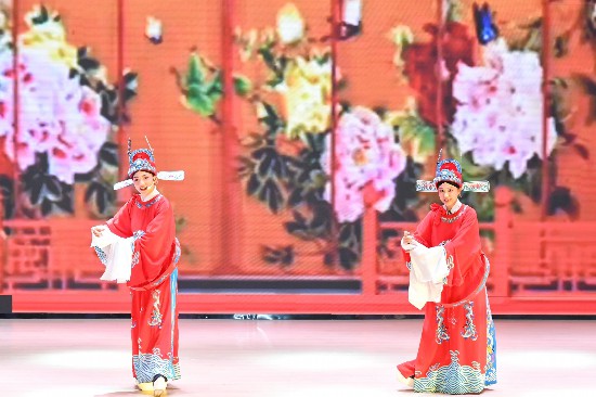 1月12日,合肥市蜀山区在五十中天鹅湖校区(奥体分部)举行“戏剧进基层”文明实践活动暨第三届戏剧“传帮带”汇报展演及“戏曲进校园”巡演,黄梅戏、京剧、庐剧等剧种的经典选段轮番上演,为师生献上一场精彩纷呈的传统文化视听“盛宴”。图为黄梅戏《谁料皇榜中状元》演出现场。