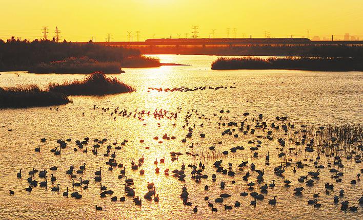 候鸟聚集十八联圩湿地