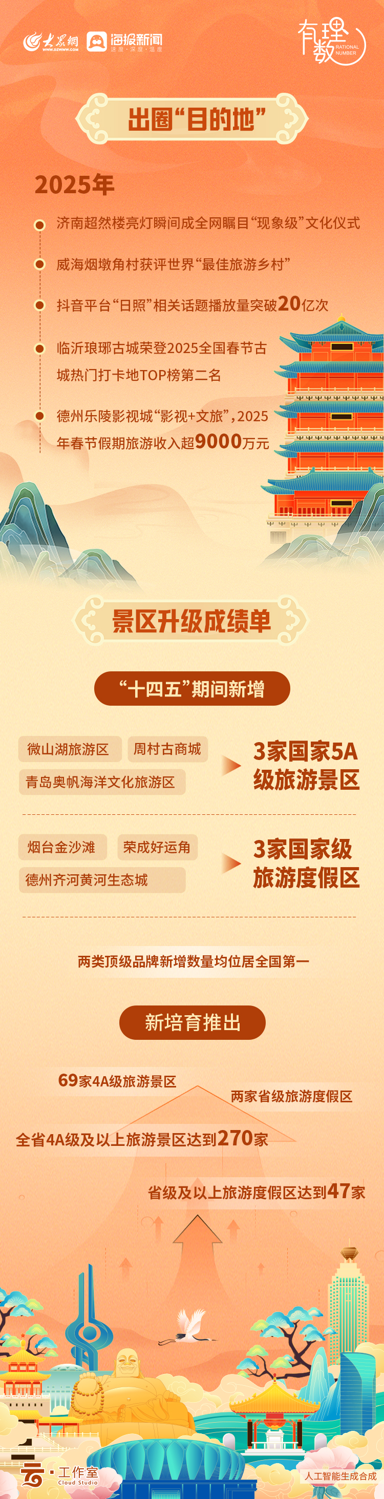 山东的文旅篇章,始于泰山之巅的磅礴日出与黄河入海的雄浑交汇,承于孔孟之道的千年文脉与齐鲁大地的历史厚重,而最终落笔于每个平凡日常里真诚的笑脸、滚烫的烟火与敞开的怀抱。