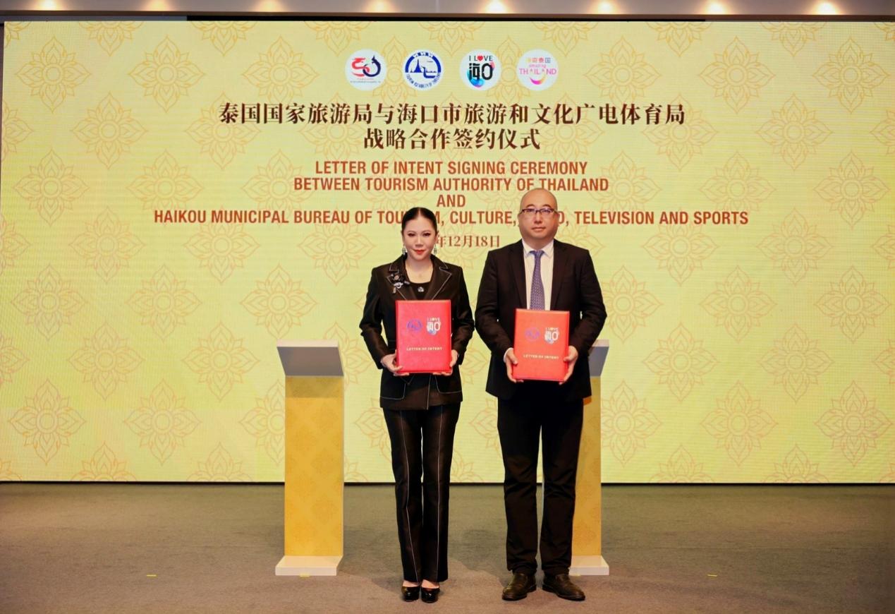 人民网海口12月18日电(记者李学山)12月18日,泰国国家旅游局(TAT)与海口市旅游和文化广电体育局、同程旅行在中国海南省海口市签署旅游合作意向书,旨在整合政府与市场资源,提升中泰旅游市场联动效应,推动两国“双向旅游(Two Way Tourism)”合作迈向更高水平。