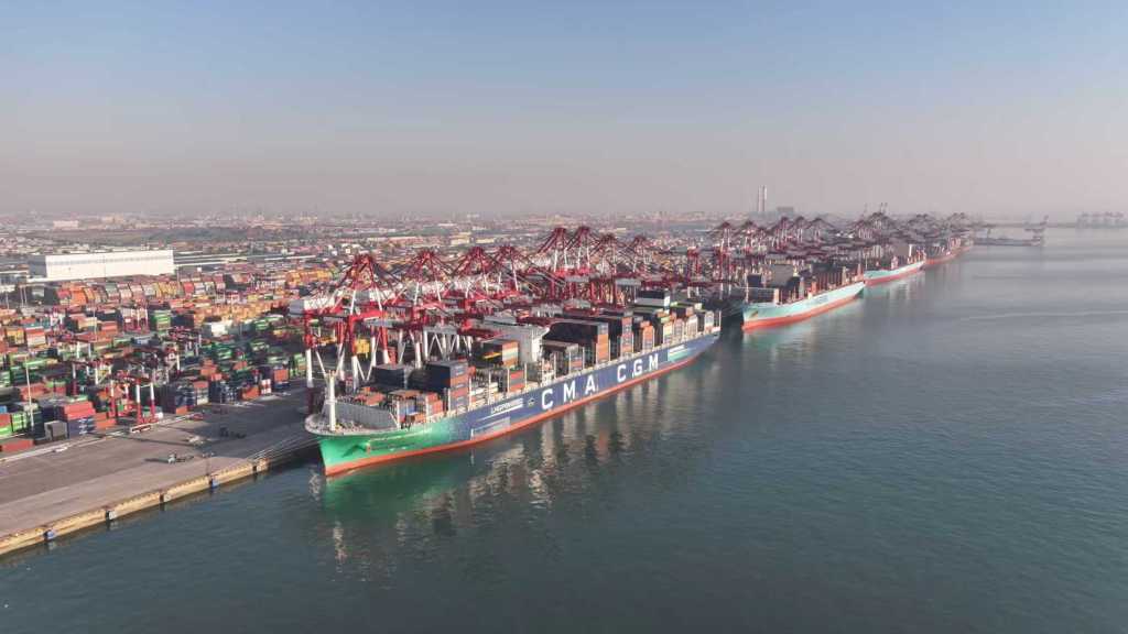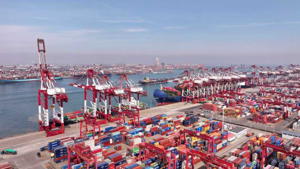 与此同时,青岛港着眼产业链供应链稳定,全力保障重点货种流转。出口方面,“新三样”、工程车、挖掘机等机械设备通过“流程优化”高效作业,彰显“中国制造”强劲活力;进口方面,稳步接卸大豆、小麦等民生物资,以及矿石、煤炭、原油等能源物资,筑牢产业链供应链防线,实现外贸出口与内贸保障双向赋能。