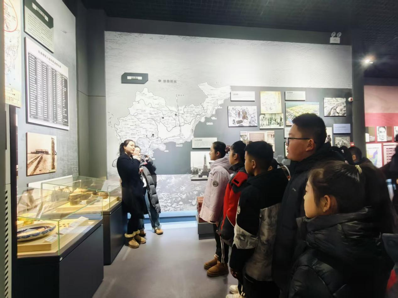 研学第一站来到汤原博物馆。在红色抗联历史展区,讲解员生动讲述了抗联英雄们在冰天雪地中奋勇抗争的故事,学生们认真聆听,深刻感悟东北抗联精神的内涵。