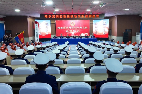 哈尔滨消防救援机动支队举行挂牌仪式