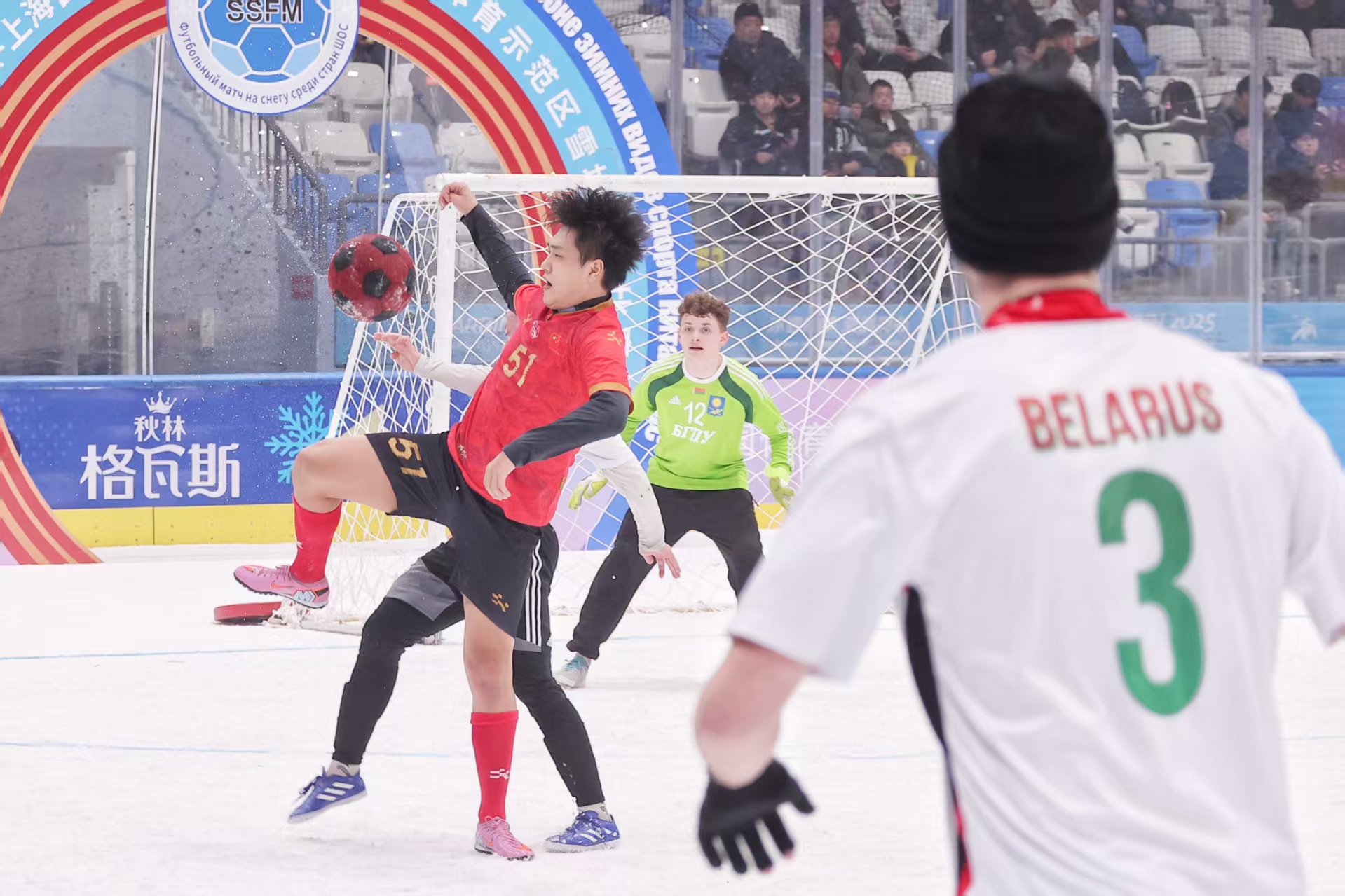 人民网哈尔滨3月9日电 (记者徐成龙)日前,“冰超”2026第三届中国—上海合作组织冰雪体育示范区雪地足球比赛开幕式在哈尔滨冰球馆举行。