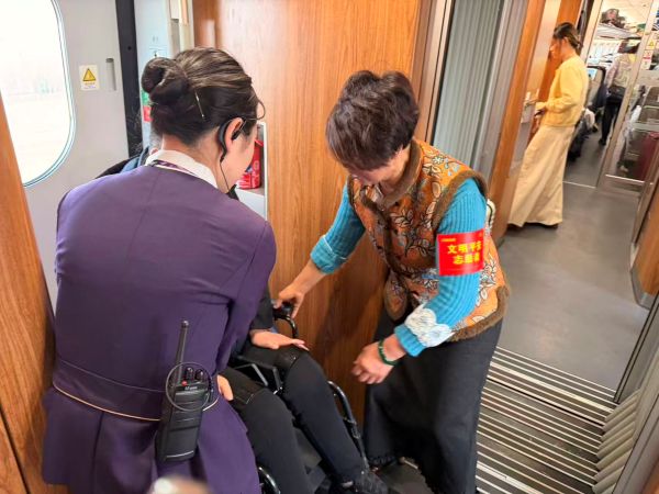 随车志愿者在列车上提供志愿服务
