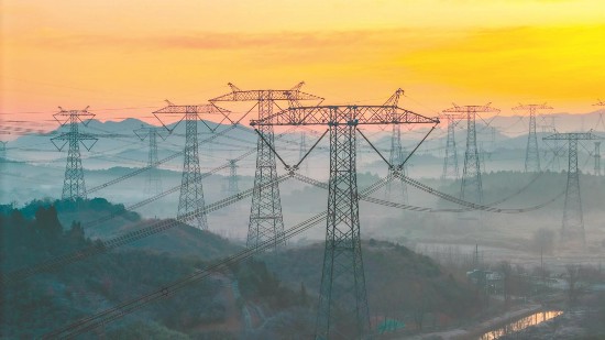 12月26日,青阳县境内的“西电东送”特高压输电工程在晨光中若隐若现,与田园、山峦交相辉映。李智宏 摄