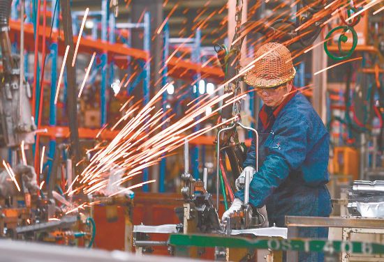 2月25日,在位于肥西县的安徽大洋机械制造有限公司,工人在生产线上进行焊接作业。春节假期结束,肥西县各企业陆续开工,开足马力,奋力冲刺“开门红”。