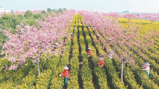 连日来,郎溪县建平镇精忠村杨仁冲3000余亩茶园里,樱花盛开,如云似霞,与翠绿茶树相映成景,吸引众多游客踏青打卡。本报通讯员 李晓红 摄