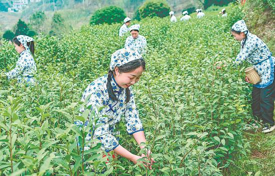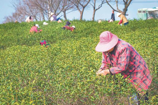 3月22日,和县功桥镇早春茶进入采摘期,茶农们抢抓晴好天气采制早春茶,供应市场。本报通讯员 张明伟 摄