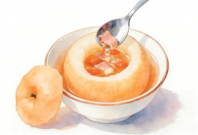 若赶时间,也可尝试简易做法。例如川贝冰糖炖雪梨,将梨去皮切块,加川贝粉1克、姜片、冰糖及少量清水,隔水炖30分钟即可;再如百合瘦肉炖梨,将梨块与百合、少量瘦肉同炖40分钟,百合有润肺安神之效,性质更平和,尤其适合老人和孩子。无论选择哪种做法,都需注意:梨要多汁、川贝宜少、火候宜文、味道求清。选材新鲜、处理干净,瘦肉提前腌制去腥,再辅以文火慢蒸,才能做出一碗汤清味润、滋养不腻的梨汤。