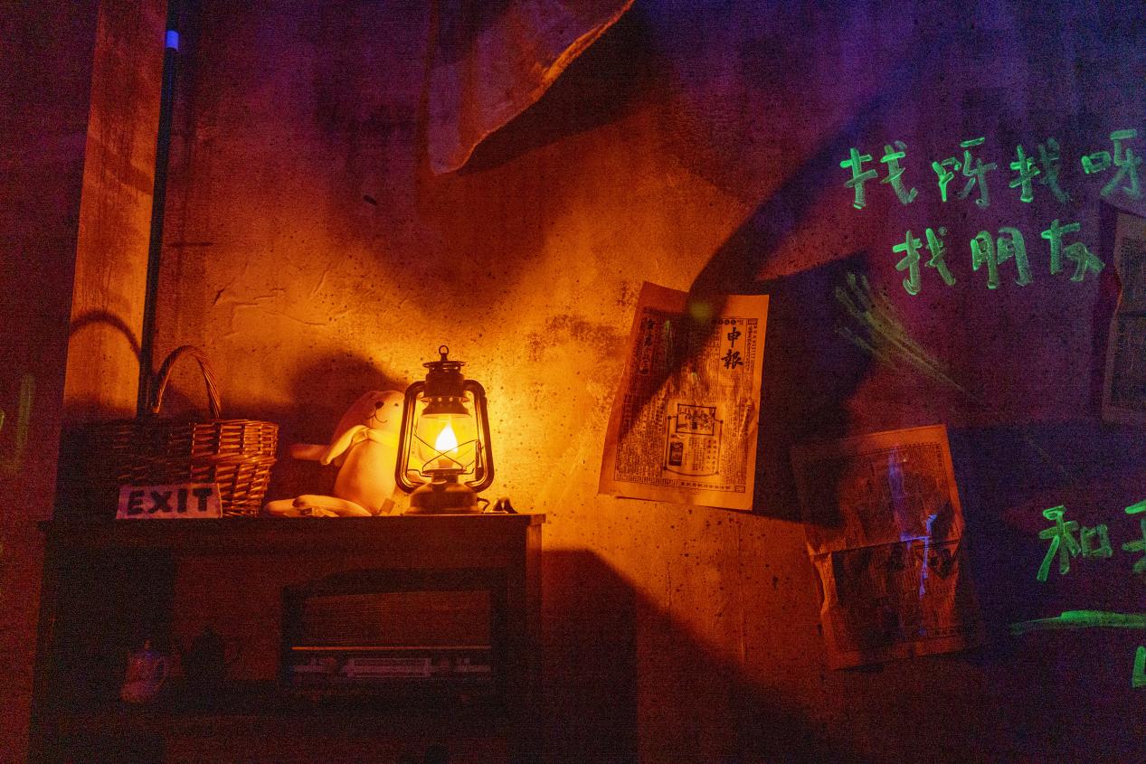 国内首档校园惊悚悬疑剧《怪谈》,剧场内精心还原涂鸦墙壁、斑驳课桌、等校园元素,采用环绕立体声音效、动态光影与场景气味系统,打造全方位包裹式沉浸氛围。