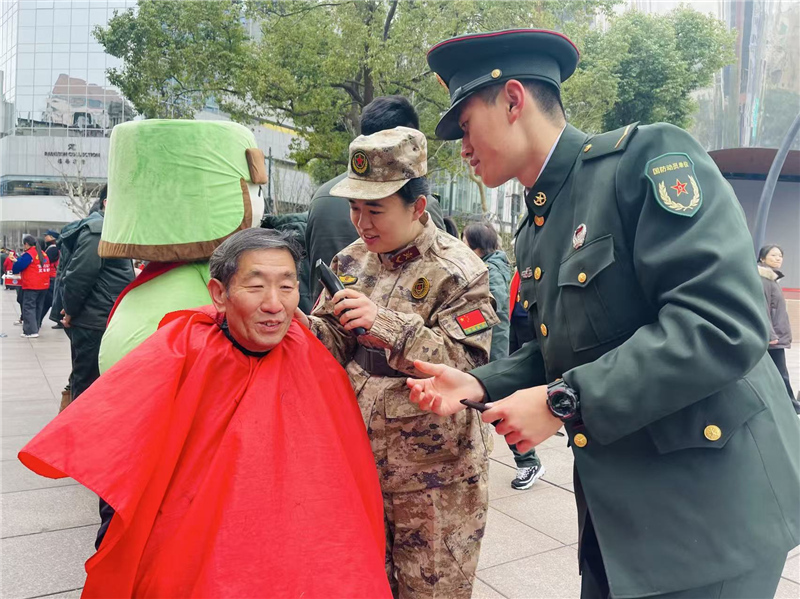 每月20日是南京路为民服务活动日。“刚开始,老百姓都是奔着好八连去的,我们的摊位冷冷清清。”队员们琢磨着女民兵还是要有自己的特色。她们开始学习新技能——不会理发的回家“拿老公练手”;不懂插花的跟着视频现学现卖;增设法律咨询、手机教学、养生保健等服务。渐渐地,她们的摊位前开始排起长队。