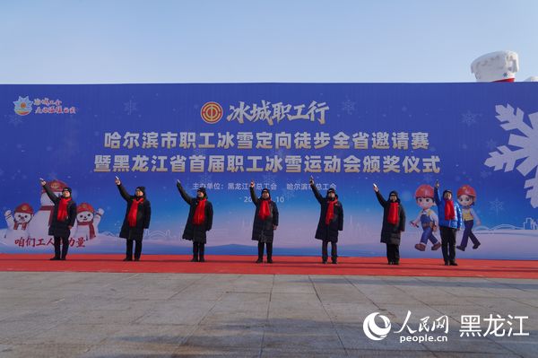 人民网哈尔滨1月11日电 1月10日,由黑龙江省总工会、哈尔滨市总工会联合主办的“冰城职工行”哈尔滨市职工冰雪定向徒步全省邀请赛暨黑龙江省首届职工冰雪运动会颁奖仪式,在太阳岛风景区太阳石广场启幕。黑龙江省21支职工代表队,哈尔滨市劳模、新业态劳动者及职工代表,省、市总工会机关干部等约3300人参加活动。