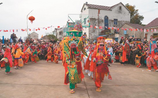2月14日,芜湖市湾沚区上演非遗老村街张氏马灯。