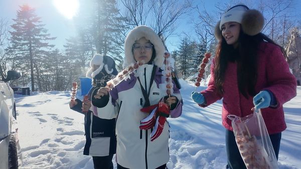 为迎接远方来客,当地文旅部门在海拔1203米的山顶为游客准备了冰糖葫芦和热气腾腾的五彩饺子,还组织了泼水成冰体验活动,让南方游客感受到东北冬天的独特魅力和浓浓的节日气息。